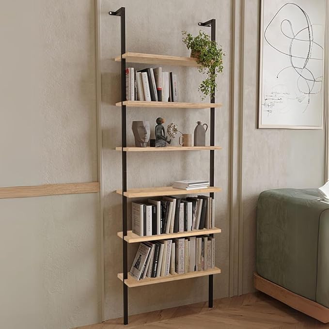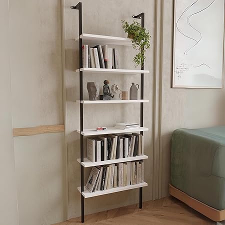 URBNLIVING Bibliothèque murale à 6 étagères en bois avec cadre en métal, meuble de présentation pour le salon, idéal pour les livres et la décoration, design élégant et peu encombrant (blanc)