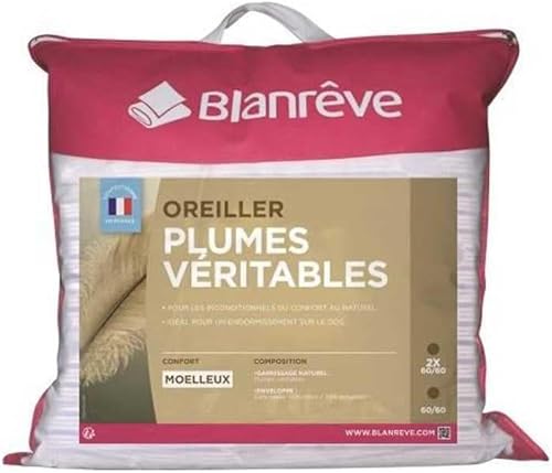 Blanrêve - Lots 2 Oreillers Naturels - Percale Tradition - Conforts Moelleux - Entretien Facile - Fabriqué en France - 60x60 cm