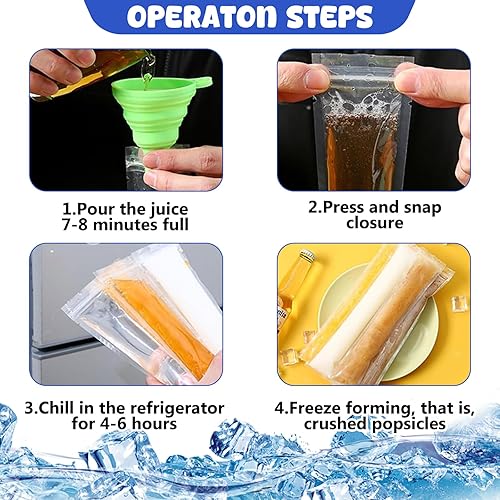 Sachets de Glace à l'eau, 200 Sachets pour Moules à Glace, Sans BPA, avec 1 Entonnoir, Sachets Jetables pour Moules à Glace au Yaourt, Bonbons et Crème Glacée