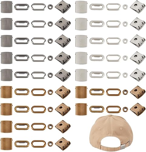 BENECREAT 24 ensemble de Boucles de Chapeau en Laiton Fermetures à Boucle de Réglage pour Casquette de Baseball avec Œillets Boutons Pression de Remplacement pour Sangles de Sac à Dos