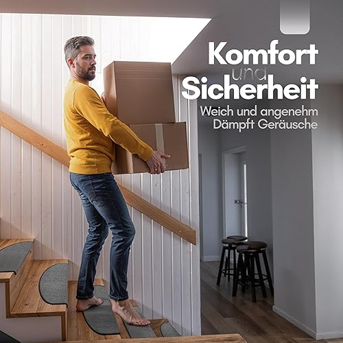 Björn&Schiller Lot de 15 Tapis d'escalier Autocollants 65 x 25 cm, Tapis antidérapants pour escaliers, Tapis pour marches d'escalier, Tapis d'escalier Semi-Circulaire, Tapis d'escalier, Tapis