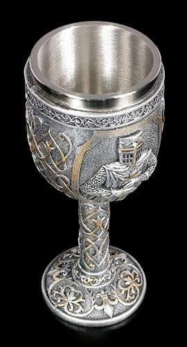 Figuren Shop Gmbh Chevalier Calice - Croisés Maintient Épée - Couleurs Argentées Trink-Kelch avec Insert en Acier Inoxydable, Peint à la Main