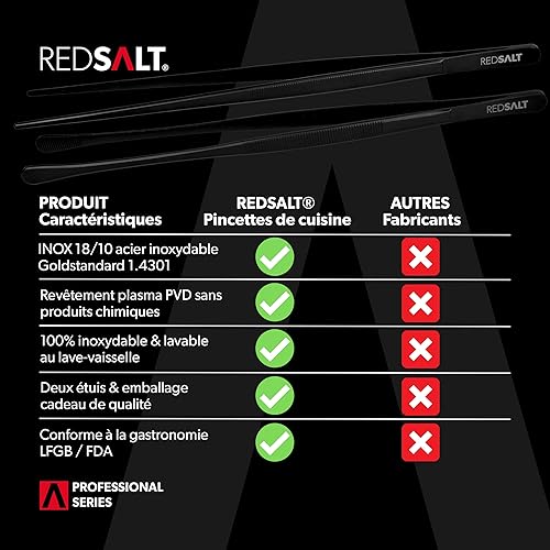 REDSALT® Black Edition Set de pinces de cuisine noir 30cm | INOX 18/10 acier inoxydable résistant au lave-vaisselle revêtement PVD | cuisinier professionnel pincette grill gourmet brucelles