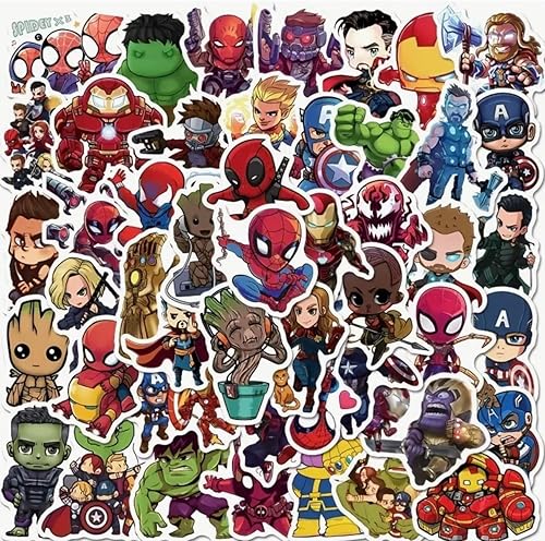 Autocollant 50 Pièces Stickers Super Héros, Autocollant Vinyle Impermeable, Stickers pour Skateboard Scrapbooking Pc Ordinateur Portable Valise Telephone MacBook Bouteille Tablette Journal Guitare etc