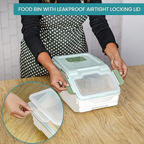 BELLE VOUS Boite de Conservation Alimentaire Plastique - Boite de Rangement Cuisine 5 litres - Gobelet Doseur et Couvercle Hermétique - Bac de Rangement Pomme de Terre et Céréales