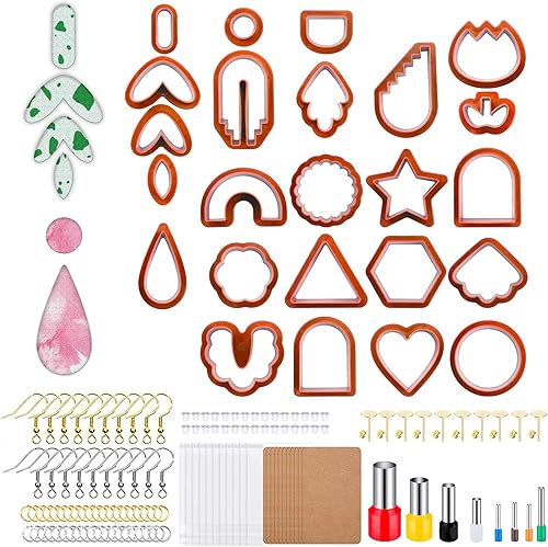 DuzLink Lot d'emporte-pièces en Argile polymère pour Boucles d'oreilles avec 142 Boucles d'oreilles pour la Fabrication de Bijoux avec Crochets de Boucles d'oreilles