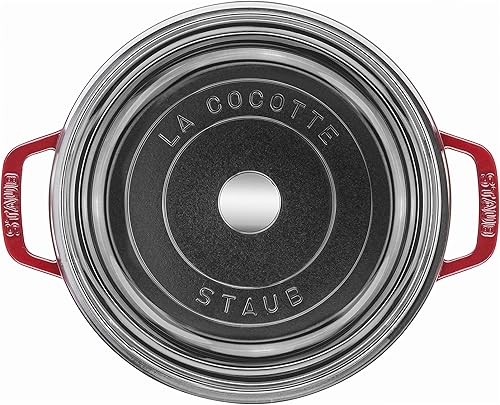 Staub Cocotte ronde en fonte avec couvercle en verre Cerise 4 l