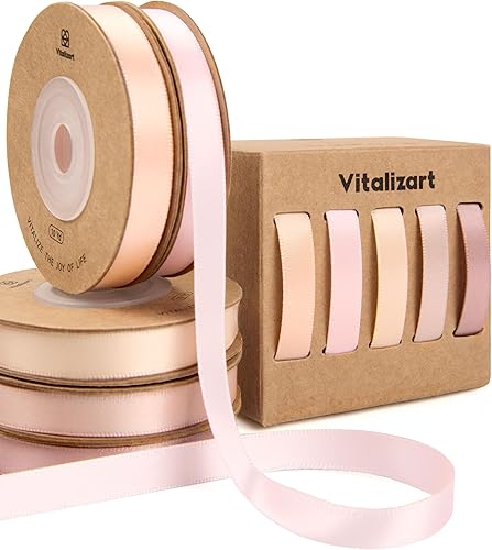 Vitalizart Ruban de Tissu Série Rouge pour l'Artisanat 0,95 cm x 45,7 m (5 Rouleaux * 9,14 m), Rubans de Satin Double Face Rouge & Blanc pour Emballage Cadeaux, Bouquets de Mariée, Décorations de Fête
