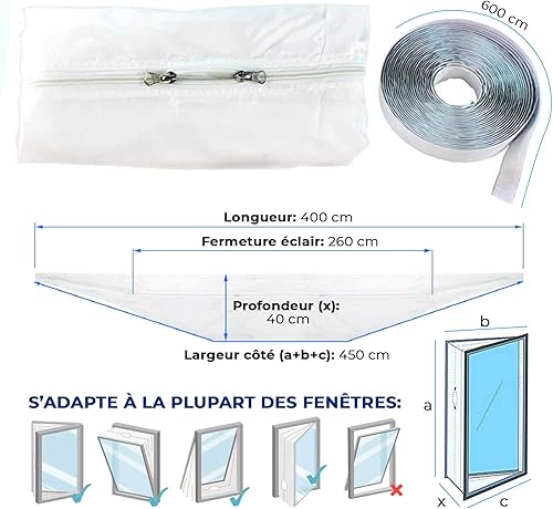 Kit Fenêtre Climatiseur Mobile (400 CM) Joint de Fenêtre - Tissu de Calfeutrage Fenetre pour Climatiseur - Compatible avec Tous les Modèles - INSTALLATION RAPIDE & FACILE