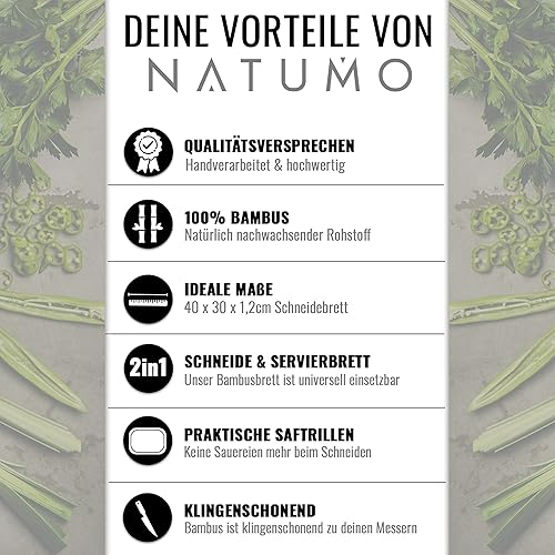 NATUMO ® Planche à découper en bambou avec rainure à jus - 40 x 30 cm - Planche en bois massif - XXL
