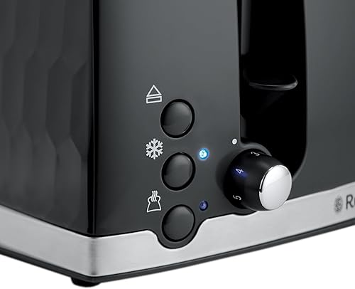 Russell Hobbs Grille-pain nid d'abeille 4 tranches (fentes indépendantes et extra larges avec levage élevé, 6 niveaux de brunissage, fonction Frozen/Annulation/Réchauffage, Plateau ramasse-miettes