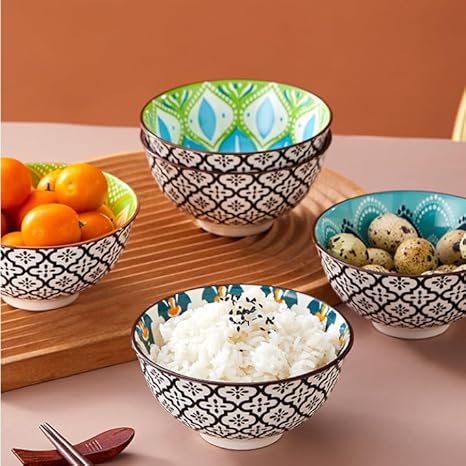TuYines Lot de 4 bols à céréales en céramique de 12 cm pour crème glacée, riz, soupe, dessert, micro-ondes et lave-vaisselle
