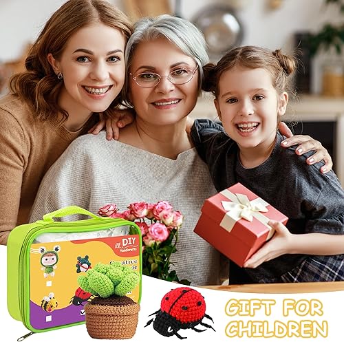 Kit De Crochet Pour Débutants,Coccinelle et Succulentes Pack d'Aiguilles de Tricot à Crocheter pour Enfants et Adultes Cadeau Bricolage Avec Des Instructions étape Par étape Et Des Tutoriels Vidéo