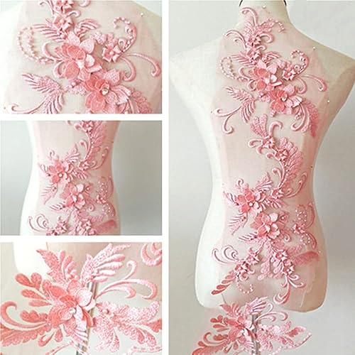 Applique 3D Dentelle Patch Broderie Perles Patchs Fleur Dentelle Garniture Pour Bricolage Artisanat Couture Découpe Mariage Vêtements de Mariée Décoration Rose