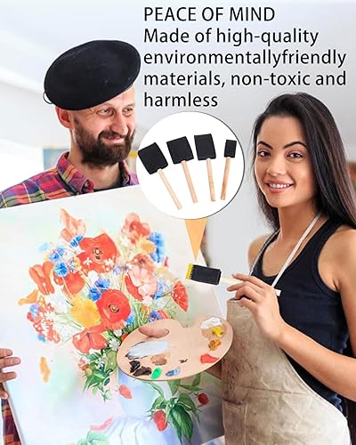 BARRU Lot de 4 pinceaux éponge – Pinceau en mousse avec manche en bois, pinceau à pointiller en mousse pour peinture, travaux manuels pour adultes et enfants et peinture à l'aquarelle (noir)