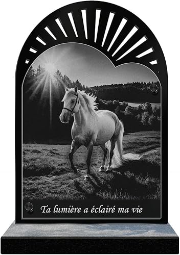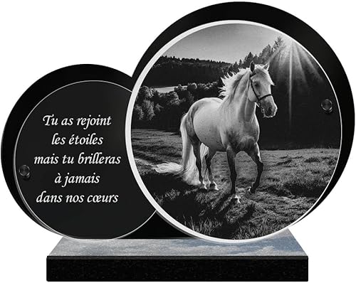 Eternel - Plaque Funéraire Personnalisée Double Cercle - Cheval, Chevaux, Equitation, Cavalier - Texte Personnalisable, Plaque Funéraire Gravée au Laser, Hommage, Cimetière, Enterrement, Commémoration