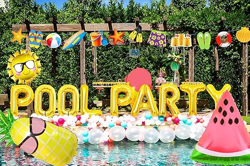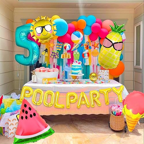 LaVenty décoration de piscine en or fournitures de fête de plage pour fille rose ballons soleil d'été bannière de fond de plage pour luau hawaii beach pool part