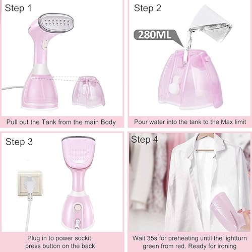 Défroisseur Vapeur, Colomba Garment Steamer Portable 1500W 280ML Fer à Repasser Défroisseur à Main Vapeur à Vêtements Vertical Steamer Pour Voyage Maison (Rose)