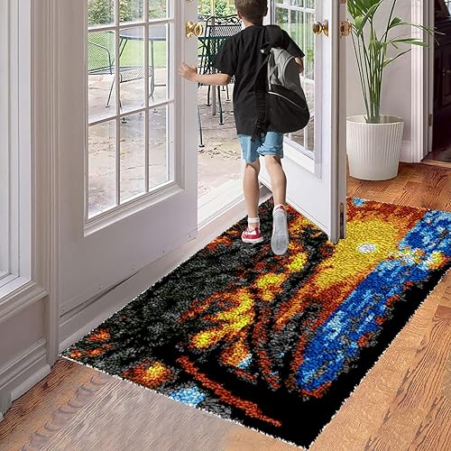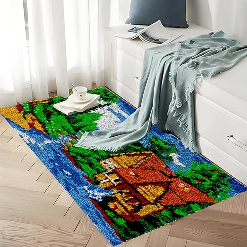 Kit de Crochet de Loquet, Kit de Broderie au Point de Croix, Kit de Fabrication de Tapis, Tapis à Point Noué Loquet Bricolage, Kit de Crochets à Loquet, Motif de Couleur Pré-imprimé 38 x 52 cm