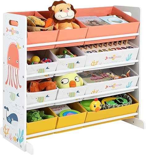 SONGMICS Étagère pour Jouets, Meuble Enfant avec 12 paniers en Tissu Non-tissé, Organisateur Jeux Livres, pour Salle de Jeux, Chambre, Blanc GKRS04WT
