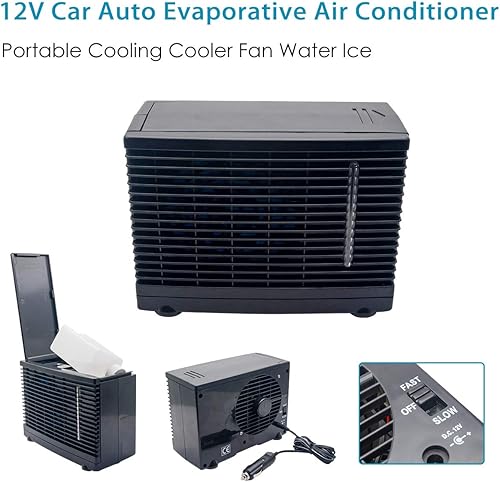 Riloer 12V Portable voiture maison climatiseur évaporation d'eau 2 vitesses refroidissement ventilateur de bureau glace ventilateur de refroidissement adapté toutes les saisons