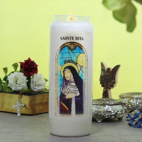 3 Bougies de Neuvaine de Sainte Rita avec prières - Bougie Neuvaine - Culte Chrétien en Cire végétale