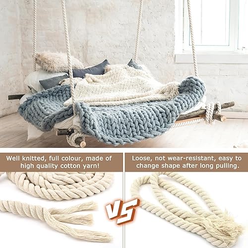 Cordon en coton pour macramé - 20 mm et 4 m - Corde épaisse - Corde en coton épaisse - Corde blanche polyvalente - Corde décorative pour bricolage, artisanat, décoration