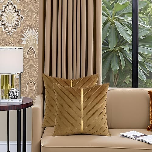 Tosleo Lot de 2 Housse de Coussin 50x50cm Taie d'oreiller en Velours Plissé Décoration de Lingots d'or pour Maison Salon Chambre Brun