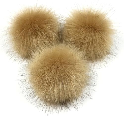 Pompons pour chapeaux à faire soi-même, pompons pour tricot et chapeaux avec bouton-pression (couleur naturelle)