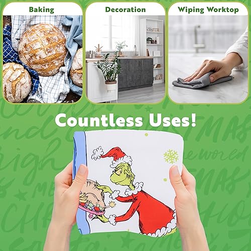 The Grinch Pack de 2 Torchons de Cuisine Coton, Accessoire Cuisine Noël