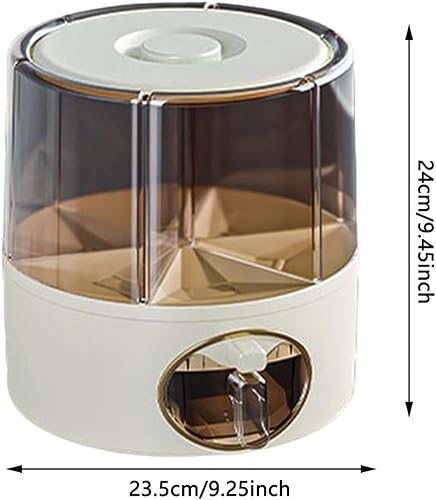 Boîte de rangement rotative à 360° pour céréales, distributeur de riz transparent à 6 compartiments avec sortie en un clic, organiseur hermétique pour riz, légumineuses, haricots rouges et
