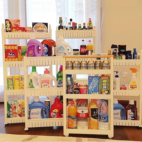 JHLP Chariot de rangement à 3 étages sur roulettes, 9 cm de large, idéal pour bureau, chambre, salle de bain, buanderie et commodes, chariot de rangement polyvalent pour salle de bain et cuisine