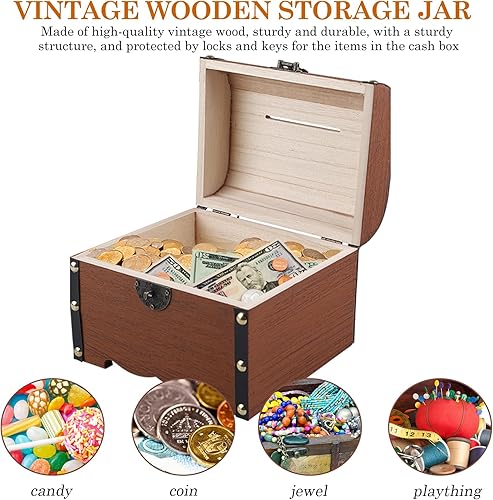Coffre au trésor, en bois, vintage, avec clé, petite caisse au trésor, avec serrure, 18 x 13 x 13 cm, pour stocker, décorer, anniversaire d'enfant