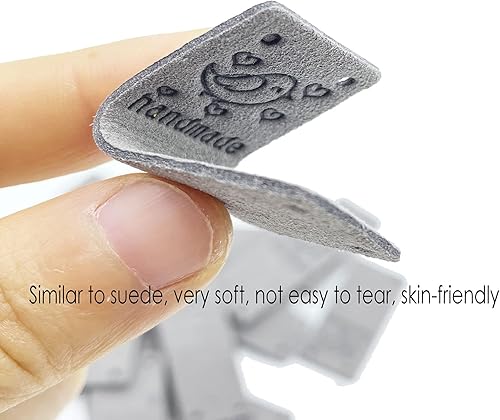 Gewene Lot de 50 étiquettes en cuir synthétique faites à la main avec trous en relief pour jeans, sacs, chaussures, chapeaux, travaux manuels, tricot et crochet (5 styles, marron foncé)
