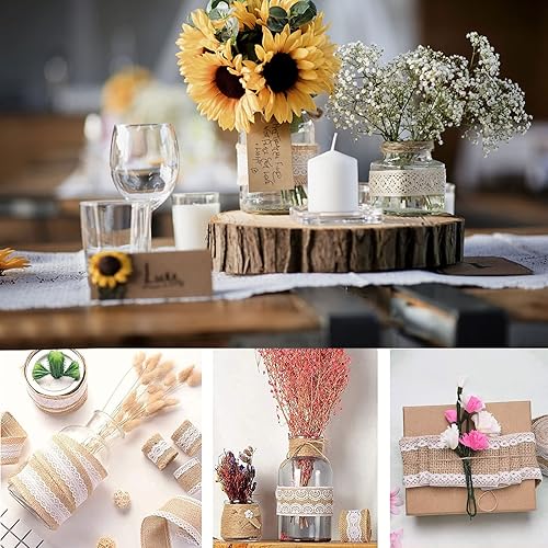 8 Rouleaux Ruban de Jute, Ruban Jute Dentelle, Naturelle Vintage Ruban en Jute avec Dentelle, Ruban Blanc Vintage, Bricolage Décoration De Mariage Artisanat, Les Emballages-Cadeau(1 mètre par rouleau)
