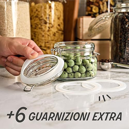 Praknu 6 Bocaux en Verre Hermétiques de 500ml - Avec Étiquettes, Marqueur et Joints de Rechange - Gain de Place grâce à leur Forme Angulaire