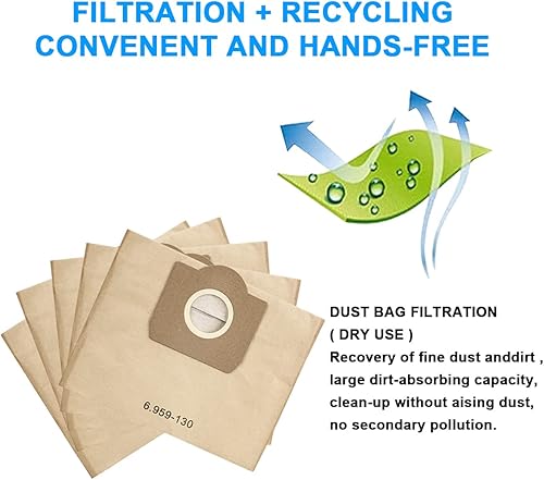 Jajadeal Lot de 6 Sacs d’aspirateur pour Karcher WD3 MV3 WD3P, Sacs filtrants en papier de rechange pour Aspirateu 6.959-130.0