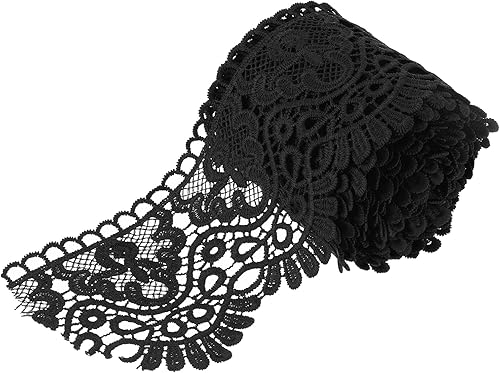 QUARKZMAN 4 Pouce Large 5 Yard Motif Floral de Ruban de Dentelle Noir Ruban de Garniture en Dentelle, Garniture en Dentelle de Soie de Lait pour Fabrication de Couture, Artisanat