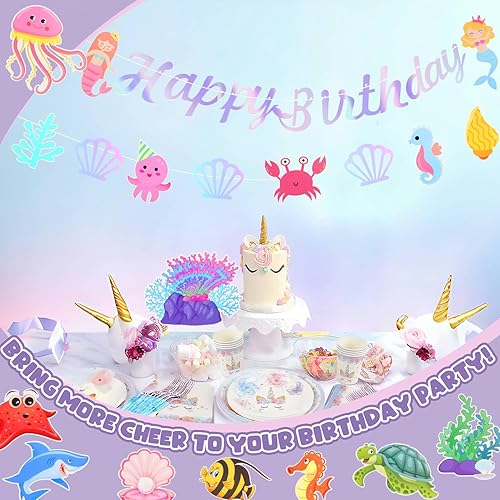 Graplan 16 Pièces Bannières de Sirène et Spirale à Suspendre, Bannière Guirlande Suspendue, sous Mer Animaux Marins Spirales, Serpentin Plafond en Spirale pour Fête sur Thème d'Océan