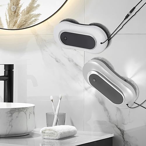 Nettoyeur de vitres électrique automatique avec double jet d'eau et 10 chiffons de nettoyage, aspirateur intelligent pour l'intérieur et l'extérieur des fenêtres de grande hauteur (gris argenté)