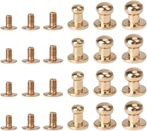 HEALLILY 72 Pièces Tête Ronde Bouton Goujon Vis à Fente Chicago Vis Post Fixation Spot Rivet Clou Rivet pour Bricolage en Cuir Artisanat Bagages Sac à Main Accessoires Doré