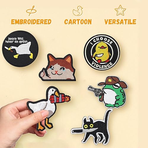 xolear 6 Pieces Ecusson a Coudre Enfant, Couleur Patch Velcro avec des Dessin Animé Animaux Mignons Couteau Mordant Drôle de Canard, Patch Vetement pour DIY Broderie Jeans Chapeau T-shirt