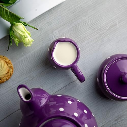 City to Cottage | Pot à lait Saucière | violet à pois blancs en céramique fait et peint à la main