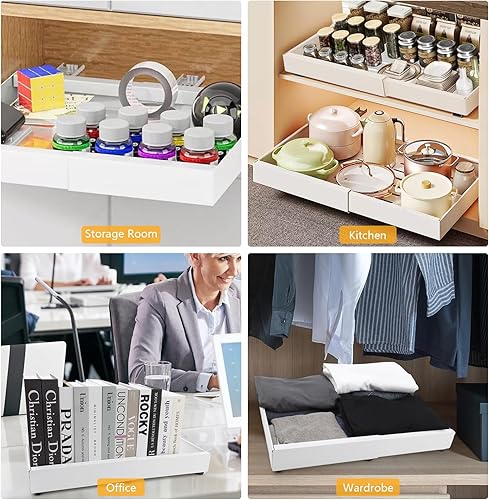 VINATO Tiroir Coulissant Cuisine, Tiroir Telescopique Cuisine, Largeur Ajustable Placard (32-52cm L X 42 Cm P X 7.5 Cm H), Rangement Cuisine Adhesif, Plateau Coulissant Cuisine, Blanc