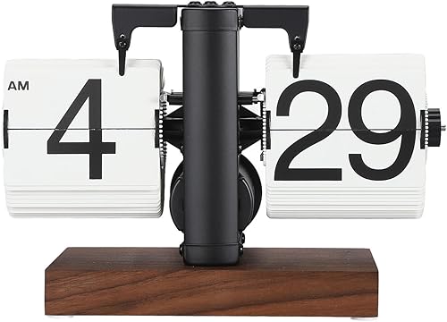 Cosiki Horloge Mécanique à Bascule, Facile à Lire, Alimentée par Batterie, Horloge de Bureau Numérique à Bascule de 12 Heures (Page Blanche avec Cadre Noir)