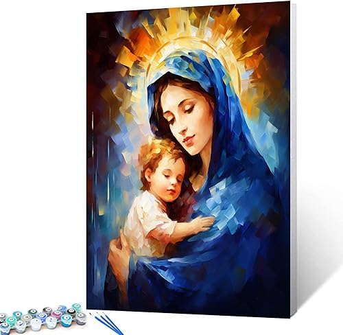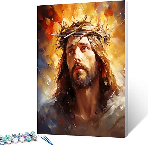 Tucocoo Kit de peinture à l'huile par numéros Jésus et femme - 40,6 x 50,8 cm - Peinture à l'huile sur toile pour adultes avec pinceaux et pigments acryliques - Images de prière de foi chrétienne pour