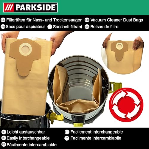 Parkside Sacs à poussière originaux 10 pièces pour LIDL Aspirateur eau et poussière PNTS 1400, A1, B1, C1, D1, E2, PNTS 1500 A1, B2, B3