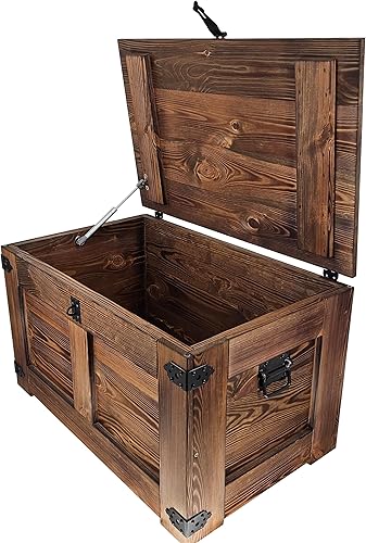 CREATIVE COOPER Boîte en bois, coffre au trésor, boîte de rangement, coffre de lit, table rustique, table basse, boîte à jouets, 77 x 49 x 45 cm, fait à la main, huile de bois écologique wengé