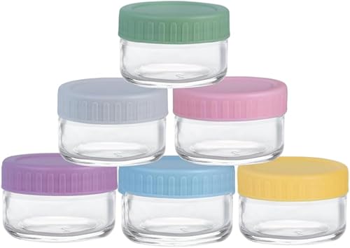 MEETOZ Lot de 6 petits récipients à vinaigrette en verre avec couvercle réutilisable pour aliments, épices, fruits, sauces, céréales, collations (50 ml)