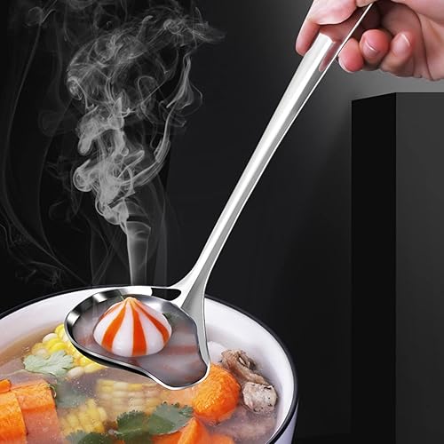 2pcs Cuillère à Sauce,inoxydable,avec Bec verseur,cuillère à sauce avec manche long,cuillère verseuse,avec trou de suspension,pour pot chaud (argent)
